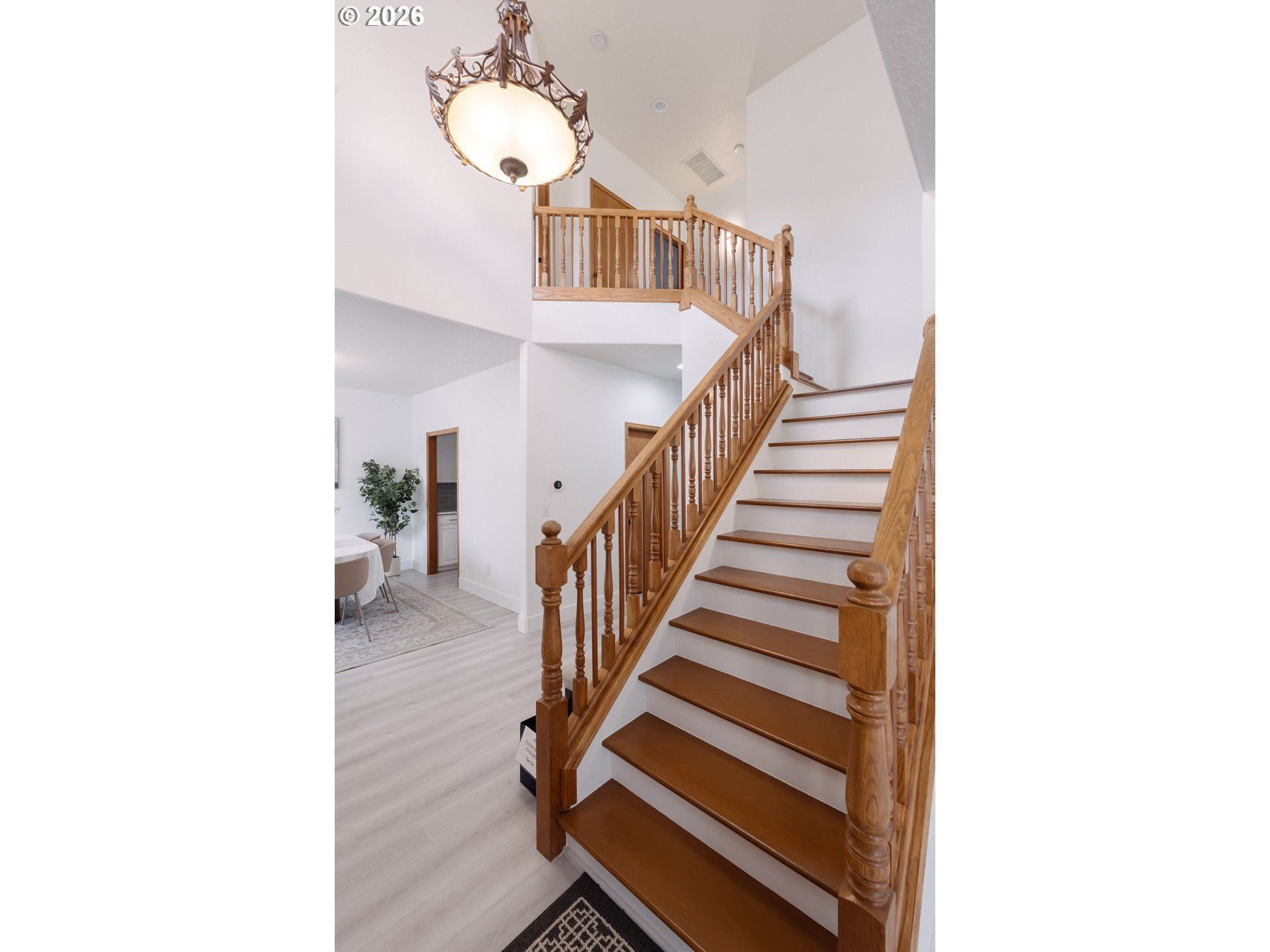 This meticulously updated 3 bed + 2 large bonus rooms and 3.5 bath Happy Valley home is built for entertaining and flexibility. One of the best features is the massive bonus suite over the garage. With its own full bathroom and a separate private entrance, this space is ideal for guest quarters, potential rental unit to help with the mortgage, or a private home office. The main home floor plan features a soaring 20 feet vaulted entry and a complete top to bottom renovation/refresh, including new flooring, fresh paint, and craftsman style molding throughout every room. The kitchen is a highlight, featuring brand new custom cabinetry, sleek quartz countertops, and a massive butler's pantry for extra prep space and storage. Modern upgrades provide ultimate peace of mind, including a suite of new stainless steel appliances (fridge, dishwasher, microwave, disposal), a new water heater and a durable 8 year young Malarkey high end roof. There is plenty of room for everyone throughout the home. The primary suite includes a private bath with a luxurious Jacuzzi soaking tub. Two additional bedrooms share a fully updated Jack and Jill bathroom with new quartz counters, tile flooring, fixtures, and cabinets. Outside, the gated and paved driveway offers secure parking for 6 plus vehicles, including a dedicated RV hookup with electricity. The backyard oasis includes a peaceful water feature, an adjustable basketball hoop, and a large custom attached shed for all your outdoor gear. Located within the top rated Spring Mountain Elementary, Happy Valley Middle and Clackamas High Schools, you're just a few blocks from the Happy Valley Farmers Market. This home offers luxury and income potential with the added benefit of no HOA fees! Home is centrally located within a few minutes of the Clackamas Promenade, 205 freeway and local hospitals/clinics.