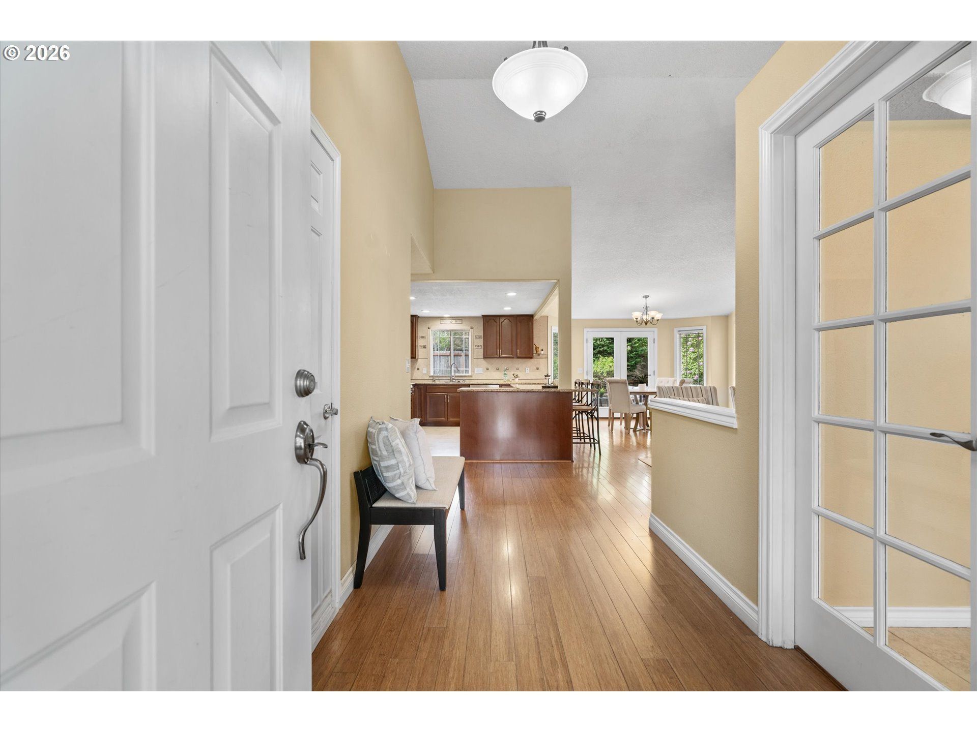 Stunning single-level home bordering Snyder Park! This beautifully updated residence offers an exceptional combination of comfort, style, and location. Rich hardwood floors, vaulted ceilings, and a desirable great-room floor plan create an open, light-filled living space perfect for everyday living and entertaining. Tucked away at the end of Smock Street, this home enjoys a rare no-outlet setting with direct access to Snyder Park-bringing trails, green space, and recreation right to your doorstep. The spacious primary suite provides a private retreat, while the front office offers an ideal setup for remote work or a quiet study. A fully fenced backyard, expansive deck, and serene park views invite you to relax outdoors, while the oversized three-car garage easily accommodates extra vehicles, hobbies, storage, or a workshop. Thoughtful updates throughout and an unbeatable location make this home truly special. A rare opportunity to enjoy single-level living with park-side privacy in the heart of Sherwood-don't miss it!