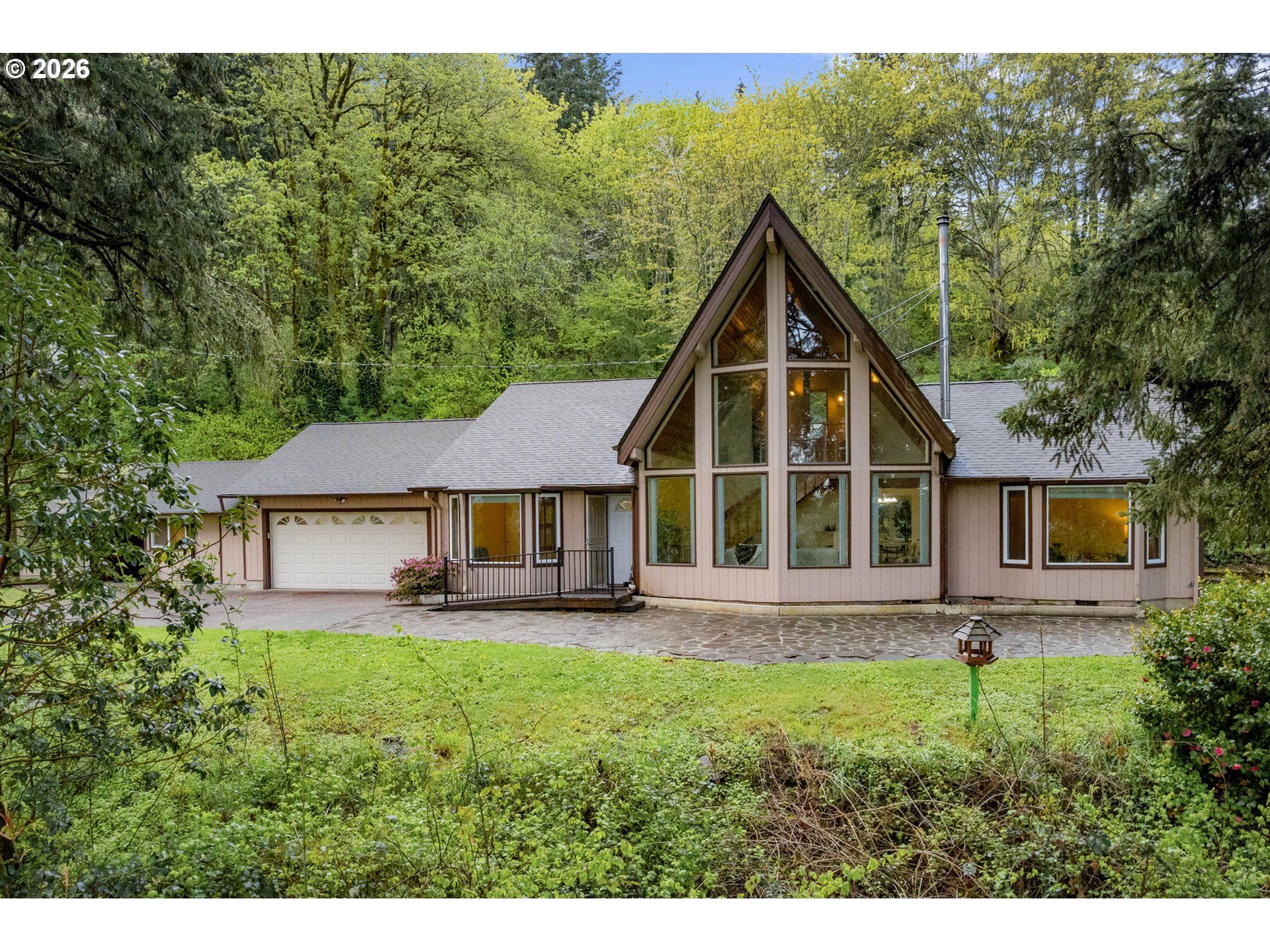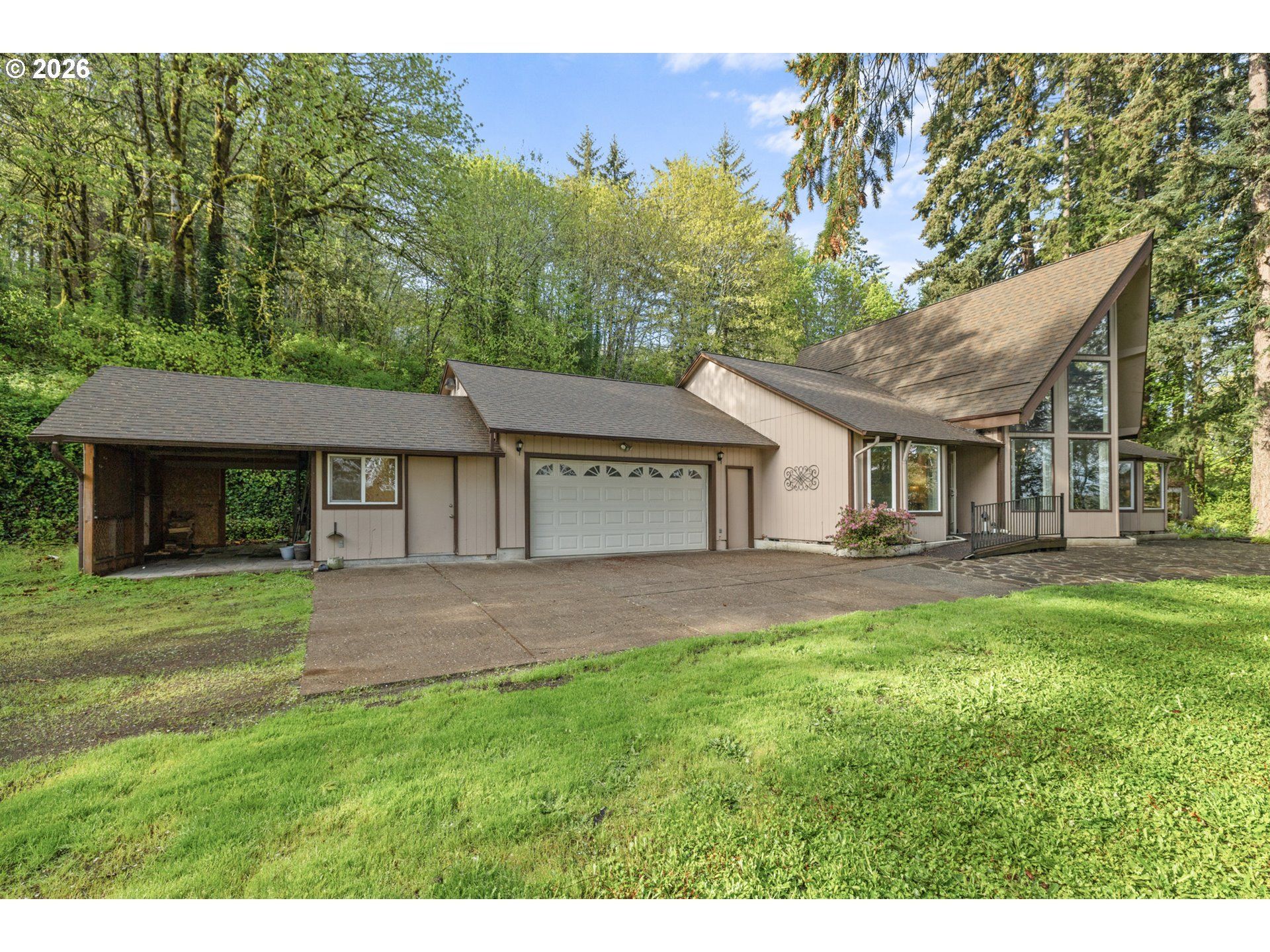 Tucked away on nearly 2 acres in Molalla, this private retreat offers the perfect mix of peace, seclusion, and convenience just a short drive to everyday amenities. Surrounded by nature, it's an ideal place to unwind and enjoy country living.Inside, you'll find soaring wood ceilings, exposed beams, and expansive windows that fill the home with natural light. A cozy sunroom overlooks the back deck and lush greenery, creating a relaxing year-round space.Major updates are already done, including a new roof (2018), propane tank (2019), well pump and piping (2020), heat pump (2021), furnace (2022), and a 22KW whole house generator (2022). Recent upgrades also include a new garage door opener, built-in oven/microwave (2023), plus brand new crawl space work and drainage (2026) for added peace of mind.The property offers incredible versatility with a workshop, garden shed with 220 power, chicken coop, woodshed, and abundant storage throughout.Enjoy your own outdoor oasis with a koi pond, terraced gardens, rock patio, and multiple decks including a private, tree-lined retreat.A rare blend of privacy, functionality, and charm perfect for those seeking space, hobbies, and a quieter lifestyle.